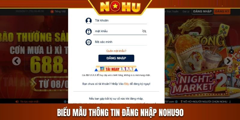 Các bước chuẩn để đăng nhập Nohu90
